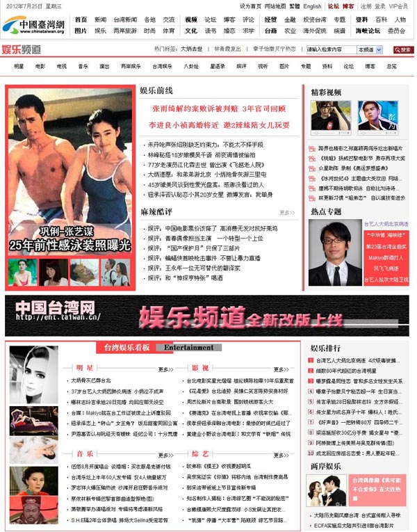 全新改版的中國臺灣網(wǎng)娛樂頻道