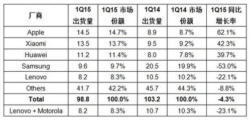 一方面原因來自于智能手機出貨量放緩:根據(jù)市場研究機構(gòu)IDC公布的《全球手機季度跟蹤報告》,2015年全球智能手機出貨量增幅將首次滑落至個位數(shù)。今年第一季度,中國智能手機市場出貨量出現(xiàn)了6年以來的首次下滑,第一季度出貨量相比去年同期下降了4.3%。