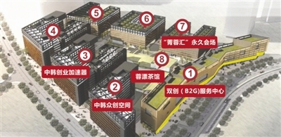 成都高新區相關負責人表示,將依托菁蓉國際廣場打造中韓創新創業園。成都菁蓉國際廣場總占地面積95畝,總建筑面積25.6萬平方米,其中地上建筑面積20.3萬平方米,地下5.3萬平方米;共8棟樓,其中研發寫字樓7棟、綜合配套服務樓1棟。其中,重點將菁蓉國際廣場2號樓打造為“中韓眾創空間”、3號樓打造為“中韓青年創新創業促進中心”。截至目前,菁蓉國際廣場已經引進18家國內知名新型孵化器,包括“中韓互聯網+新技術孵化器”、阿里百川(成都)創業基地、3W空間、I3新材料孵化器等。
