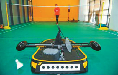 圖為來自電子科大的機器人團隊研發(fā)的智能羽毛球機器人。