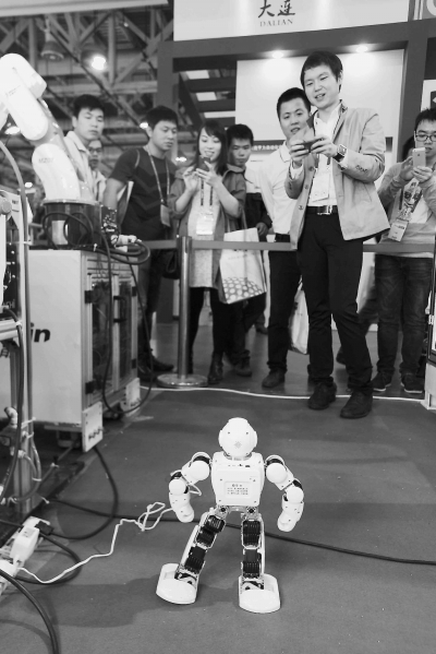 工博會(huì)上,機(jī)器人“賣(mài)萌”。本報(bào)記者施辰靜攝