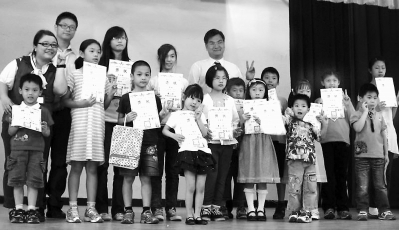 蓋夢麟(后中)與在榕舉辦的兩岸兒童公益繪畫比賽獲獎者合影。
