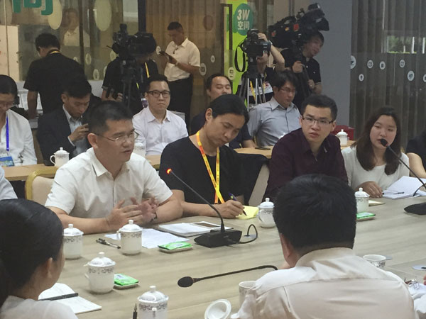 一品威客網創始人、CEO黃國華作為“海峽兩岸青年創業基地”代表參加了座談會,并進行專題發言。“我向俞主席匯報了一品威客網通過線上眾包平臺和線下孵化基地結合‘八大免費模式,服務兩岸青年’的模式,幫助海峽兩岸青年創新創業的做法,得到了俞主席的肯定和表揚。”