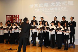 在賑災(zāi)義演中,柏林華僑華人及留學生各顯其能,通過自編自導(dǎo)的精彩節(jié)目,表達對災(zāi)區(qū)人民的同情以及戰(zhàn)勝災(zāi)難的信心。配樂詩朗誦《與你同在》、《國殤》令人震撼,使現(xiàn)場觀眾與災(zāi)區(qū)人民感同身受;《白發(fā)親娘》、《大海啊故鄉(xiāng)》、《我愛我的祖國》等歌曲抒發(fā)了海外游子對祖國母親的贊美和思念;少林武術(shù)表演及京韻大鼓《風雨同舟》表達中華民族面對災(zāi)難百折不撓、眾志成城的信念。義演期間穿插慈善拍賣和募捐,旅德華商任鴻賓捐贈的一幅國畫和一幅書法作品分別拍出420歐元和1800歐元。最后,賑災(zāi)義演在《讓世界充滿愛》、《明天會更好》的大合唱中圓滿結(jié)束。