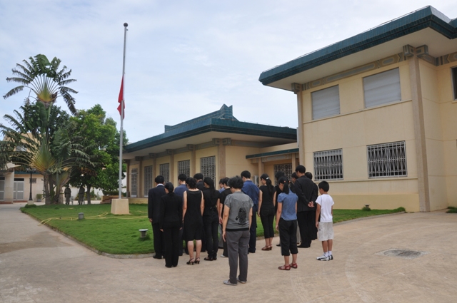使館廣場(chǎng)上氣氛莊嚴(yán)肅穆,全體館員及家屬身著素服,目視國(guó)旗升至頂端后緩緩降至半旗。在臨時(shí)代辦史大多帶領(lǐng)下,全體人員懷著十分沉痛的心情,默哀三分鐘,深切緬懷甘肅舟曲特大山洪泥石流遇難同胞。