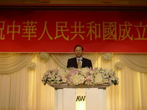 中國(guó)在韓僑民協(xié)會(huì)總會(huì)長(zhǎng)韓晟昊和漢城華僑協(xié)會(huì)會(huì)長(zhǎng)楊從昇分別代表華僑致辭。他們盛贊新中國(guó)成立61年來(lái)所取得的輝煌成就,表示祖國(guó)的發(fā)展?fàn)縿?dòng)著每一位華僑的心,看到祖國(guó)一天天強(qiáng)盛,旅韓華僑真正感到“中國(guó)人站起來(lái)了”,并為此倍感自豪。祖國(guó)是所有海外華人的母親,孝母天經(jīng)地義,愛國(guó)義不容辭。今天,使館為旅韓中國(guó)同胞舉行國(guó)慶聯(lián)歡會(huì),能夠受邀出席,倍感榮幸,同時(shí)也深切感受到祖國(guó)的日益強(qiáng)盛和對(duì)海外華僑華人的殷切關(guān)懷。旅韓華僑堅(jiān)決支持祖國(guó)維護(hù)主權(quán)和領(lǐng)土完整,衷心祝愿祖國(guó)繁榮昌盛,祝愿中韓關(guān)系不斷發(fā)展。