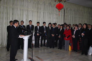 劉大使發(fā)表了熱情洋溢的講話,代表使館全體館員歡迎青年代表團(tuán)在“中巴友好年”開端之際訪巴,表示這是落實兩國領(lǐng)導(dǎo)人共識、增進(jìn)人文交流的重要內(nèi)容,對于中巴關(guān)系的長遠(yuǎn)發(fā)展十分重要。劉大使指出,過去的2010年對于中巴關(guān)系具有特殊意義,兩國患難與共的兄弟情誼在洪災(zāi)中得到了檢驗和升華,溫總理訪巴又開辟了兩國全天候友誼的新篇章。2011年是中巴建交60周年,也是兩國領(lǐng)導(dǎo)人共同宣布的“中巴友好年”,中巴關(guān)系面臨更快更好發(fā)展的新機(jī)遇。劉大使希望青年一代當(dāng)好中巴友誼的傳承者,并預(yù)祝訪問取得圓滿成功。