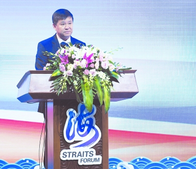 莆田市市長(zhǎng)李建輝在第十一屆海峽論壇·媽祖文化活動(dòng)周開(kāi)幕式上致辭。高亞成 攝