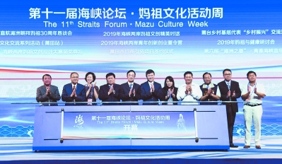 兩岸嘉賓共同為媽祖文化活動(dòng)周推桿啟幕。 高亞成 攝