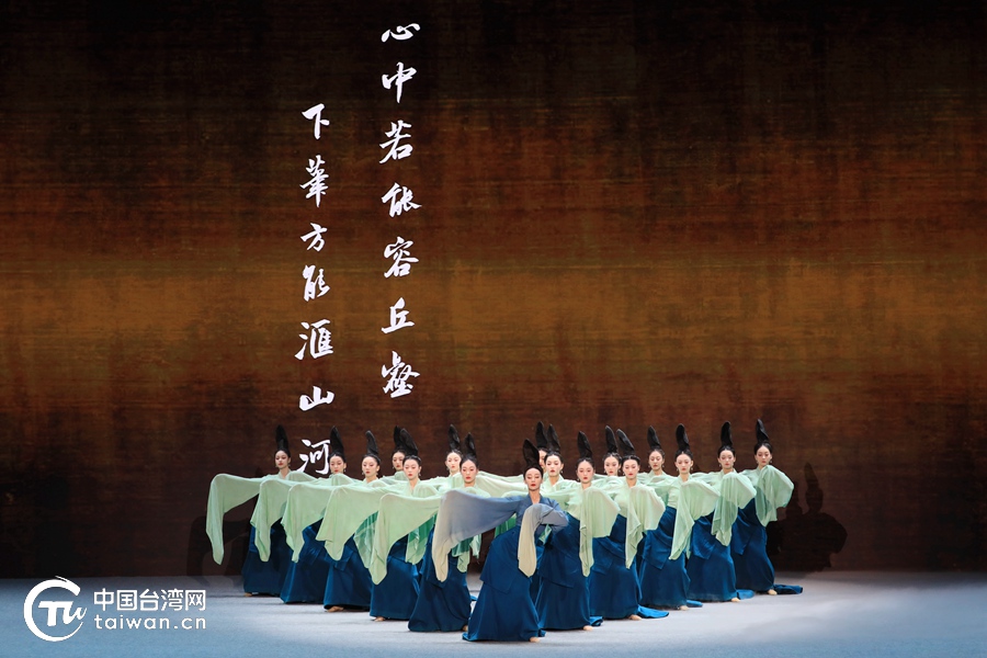 舞蹈《千里江山》展現青綠山水中國畫的匠心傳承、演繹中華江山的瑰麗畫卷。(中國臺灣網記者 尹賽楠 攝)