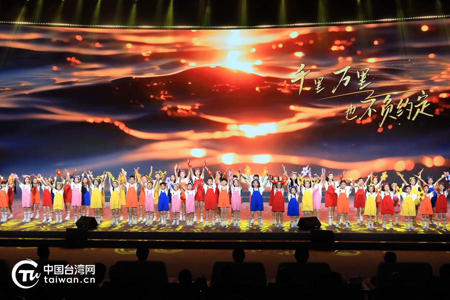 由馬尾、馬祖兩地小學生組成的“兩馬”童聲合唱團現場演唱《同根謠》。(中國臺灣網記者 尹賽楠 攝)