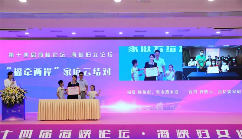 本屆論壇上,兩岸專家學(xué)者及臺(tái)胞代表圍繞“根脈相連”、“歸鄉(xiāng)圓夢(mèng)”、“緣來(lái)如此”、“以福啟程”4個(gè)篇章講述兩岸同胞心近情親的感人故事,兩岸家庭結(jié)對(duì)簽約共同啟動(dòng)“姐妹情一家親·回娘家敘鄉(xiāng)情”活動(dòng),表達(dá)了進(jìn)一步拓展兩岸婦女領(lǐng)域融合發(fā)展的美好愿望。