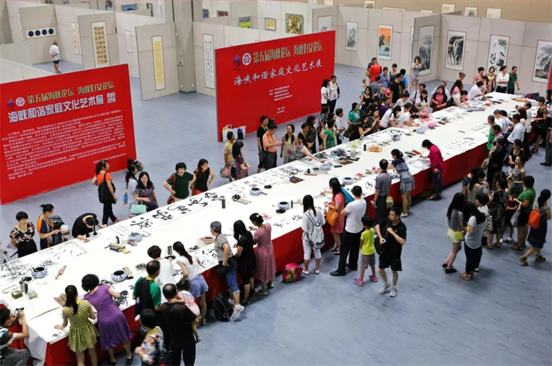 本屆論壇以“家庭和諧、藝術(shù)綻放”為主題,舉辦和諧家庭文化論壇、海峽和諧家庭文化藝術(shù)展、兩岸女藝術(shù)家共繪海峽美景書(shū)法筆會(huì),來(lái)自兩岸多個(gè)文化藝術(shù)協(xié)會(huì)的60余名女藝術(shù)家舉行書(shū)畫(huà)筆會(huì)聯(lián)袂創(chuàng)作題為《美好家園》的百米書(shū)畫(huà)長(zhǎng)卷。