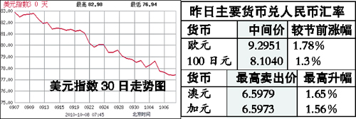 由于國慶長假期間國際外匯市場美元大跌,昨天,人民幣兌美元中間價報6.6830,再創匯改以來的新高,日升幅達0.27%。