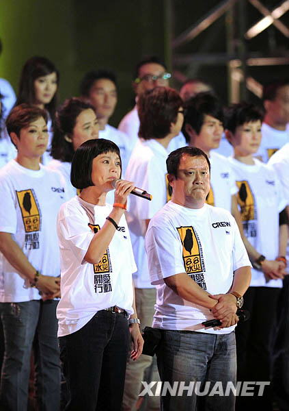 8月17日,在香港舉行的賑災義演中,臺灣藝人張艾嘉(左)與香港藝人曾志偉主持義演晚會。新華社記者陳鐸攝