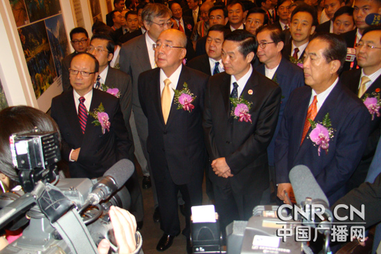 劉奇葆與吳伯雄(前排左二)、宋楚瑜(前排右一)、蔣孝嚴(yán)(前排左一)共同參觀(攝影夏威)