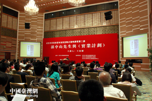 在演講過程中,王祖耀對孫中山先生的“實(shí)業(yè)計(jì)劃”進(jìn)行了詳細(xì)的闡述。王祖耀說:“‘世界潮流,浩浩蕩蕩,順之則昌,逆之則亡!秾(shí)業(yè)計(jì)劃》包含著孫中山先生對當(dāng)時(shí)世界格局的推測,這些推測與歷史有著驚人的相似。孫先生準(zhǔn)確地預(yù)測了二戰(zhàn)將由日本全面侵華開始,并最終以中國人民的勝利,日本的投降而結(jié)束。他還認(rèn)為國際間經(jīng)濟(jì)合作是維護(hù)世界和平的關(guān)鍵,這個(gè)觀點(diǎn)在當(dāng)時(shí)鮮有人贊同,而在今天,經(jīng)濟(jì)全球化發(fā)展的現(xiàn)實(shí)說明了一切!