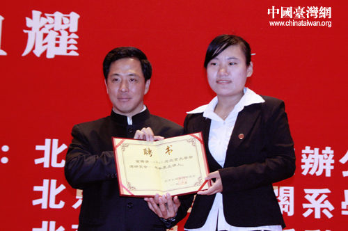 演講結(jié)束后,王祖耀先生受聘為北京大學(xué)臺灣研究學(xué)會2011年度主講人。(中國臺灣網(wǎng) 普燕攝)
