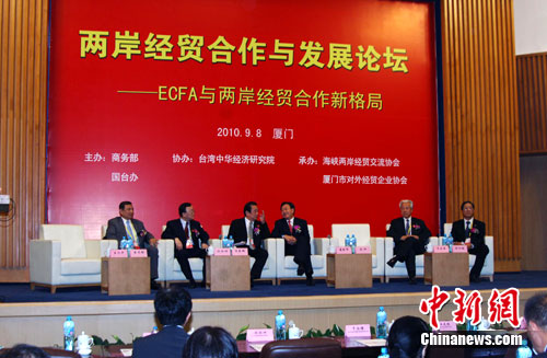 由中國國家商務(wù)部、國務(wù)院臺(tái)辦主辦的第五屆兩岸經(jīng)貿(mào)合作與發(fā)展論壇,8日下午在廈門國際會(huì)展中心國際廳舉行,兩岸學(xué)術(shù)界和工商界知名人士圍繞“ECFA與兩岸經(jīng)貿(mào)合作新格局”的主題進(jìn)行深入探討。