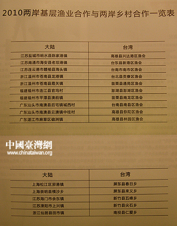 第二屆兩岸鄉(xiāng)村座談是兩岸第一次以漁業(yè)合作為主題,展開基層大規(guī)模直接交流。大陸10個(gè)以漁業(yè)為主的鄉(xiāng)村與臺灣10個(gè)漁區(qū)的漁會簽署了合作協(xié)議,結(jié)為對子。其中,簽協(xié)議的臺灣漁區(qū)占到了當(dāng)?shù)貪O區(qū)的四分之一。