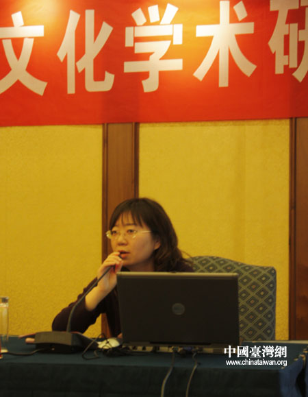 中國社科院文學研究所臺港澳文學與文化研究室副研究員李娜發言(中國臺灣網 徐麗華 攝)