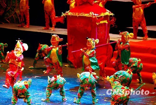 北京藍天兒童藝術(shù)團7月28日晚在臺北進行公益演出,所得善款將全部捐獻給臺南災區(qū)。演出的歌舞劇《十二吉祥》以中華民族傳統(tǒng)生肖文化為主題,展示濃郁的中華民族傳統(tǒng)風情和燦爛不息的民族文化底蘊。 中新社發(fā) 宋吉河 攝