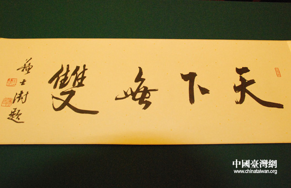 蘇士澍先生題寫的“天下無雙”(中國臺灣網 劉瑩 攝)