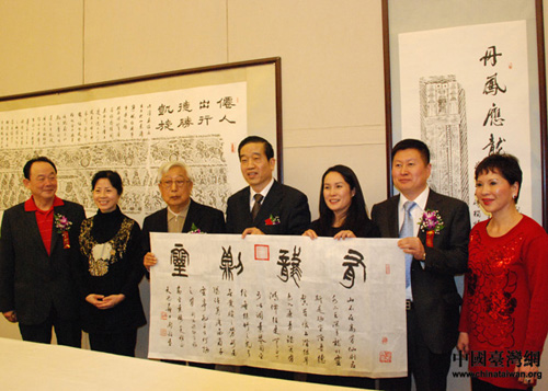 中國臺灣網3月28日北京消息 由全國政協書畫室、中國書畫收藏家協會主辦的“兩岸同根,傳承文化——劉藝、蘇士澍愛心捐助書法展”昨日上午在全國政協禮堂隆重舉行。活動共展出劉藝、蘇士澍兩位當代著名書法家作品80余幅。同時,兩位名家還當場向臺灣省花蓮縣秀林鄉捐贈人民幣300萬元籌建“愛心圖書館”。原全國政協副主席、政協書畫室主任張思卿,海峽兩岸關系協會副會長王在希,臺灣地區少數民族民意代表高金素梅等出席活動。
