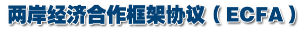 兩岸經(jīng)濟合作架構(gòu)協(xié)議(英文暫簡稱:ECFA, Economic Cooperation Framework Agreement),原稱為兩岸綜合性經(jīng)濟合作協(xié)定或稱兩岸綜合經(jīng)濟合作協(xié)定(英文簡稱CECA, Comprehensive Economic Cooperation Agreement)。