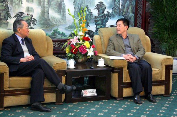 國臺辦副主任葉克冬(右)與中國互聯網協會副理事長高新民會談。(中國臺灣網記者 李徽 攝)
