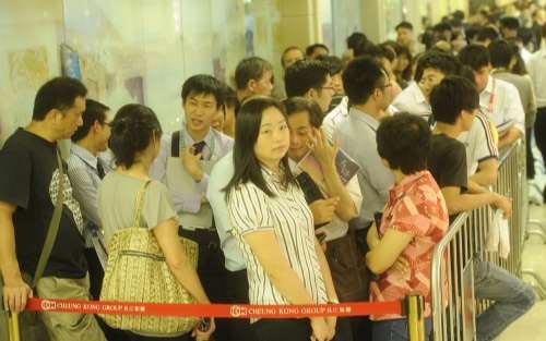 香港樓盤國慶搶閘吸客 大批買家排長隊看樓