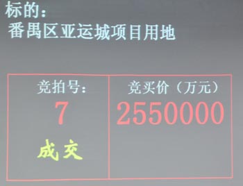 在短暫的靜默與期待之后,富力聯合體繼續叫價,一舉打破了業內心理關口,并引發全場鼓掌。在富力聯合體將地價叫到255億元的時候,保利聯合體不再繼續叫價!255億元第一次……255億元第二次……255億元第三次,成交!”伴隨著一聲響亮的棰聲,亞運城項目在歷時半個鐘頭經過47輪叫價之后被富力聯合體競得。