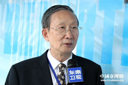 在本次研討會上,北京科技大學教授梅紹祖就互聯網人才培養與校企合作模式的問題進行了主題發言。圖為梅紹祖接受媒體采訪。(中國臺灣網 王偉 攝)
