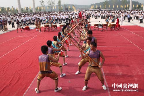 臺灣特色“宋江陣”獻演兩岸炎帝神農祭祀大典(中國臺灣網趙輝攝)