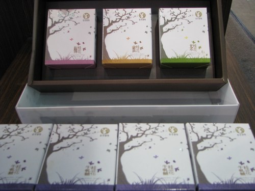 桂花小鋪種植了三千坪的桂花樹,也源自于此,桂花系列產品因此而研發產生。桂花產品制作過程繁復,桂花就像是粒粒的黃金,需要慢慢的挑選才能制作出好的桂花系列產品,目前已經研發出桂花蜜、桂花牛軋糖、桂花茶、桂花梅醋、桂花蜜醋及桂花梅。也是法國餐廳PASADENA的御用商品,具有質量保證。