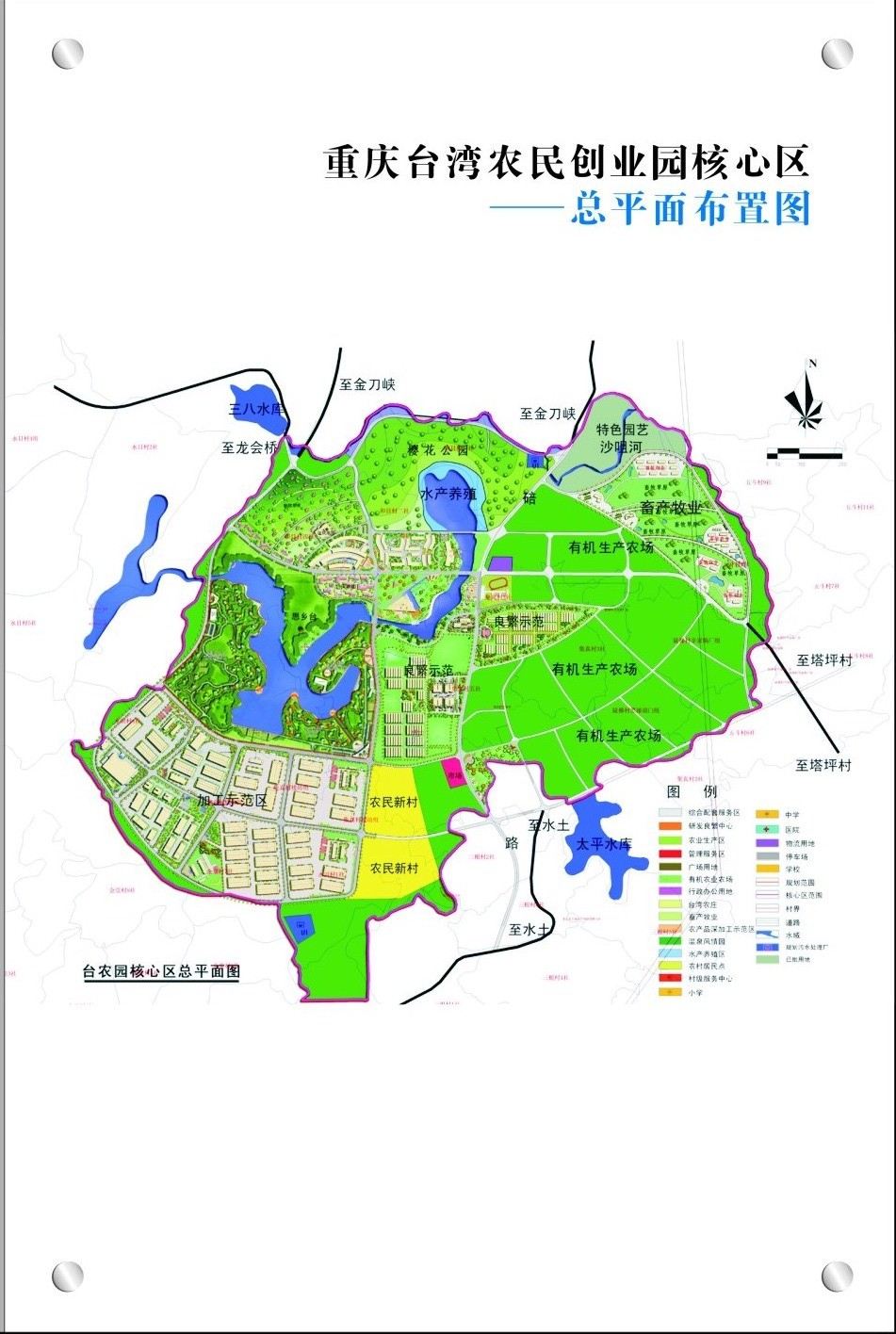 重慶臺(tái)灣農(nóng)民創(chuàng)業(yè)園是2006年經(jīng)國家農(nóng)業(yè)部、國臺(tái)辦批準(zhǔn)設(shè)立的首批四家臺(tái)創(chuàng)園之一。選址于具有500年花卉種植歷史的“中國花木之鄉(xiāng)”——北碚區(qū)靜觀鎮(zhèn),位于重慶主城北部,毗鄰兩江新區(qū),距重慶解放碑59公里、江北國際機(jī)場32公里、北碚城區(qū)21公里。園區(qū)產(chǎn)業(yè)規(guī)劃面積14平方公里,其中,核心區(qū)4平方公里(包括1平方公里的城市建設(shè)用地),拓展區(qū)10平方公里,輻射區(qū)200平方公里,分為六個(gè)功能區(qū),即瓜果蔬菜示范區(qū)、花卉苗木展示區(qū)、研發(fā)良繁示范區(qū)、風(fēng)情觀光及管理服務(wù)區(qū)、農(nóng)產(chǎn)品加工示范區(qū)、集中居住示范區(qū)。園區(qū)堅(jiān)持“以臺(tái)為主、以農(nóng)為主”的發(fā)展定位,重點(diǎn)引進(jìn)現(xiàn)代特色休閑農(nóng)業(yè)、農(nóng)業(yè)高科技成果,打造以特色園藝和花卉苗木展覽展示、觀賞體驗(yàn)為主的現(xiàn)代農(nóng)業(yè)旅游景區(qū),形成集旅游觀光、研發(fā)繁育、種植示范為一體的都市城郊型現(xiàn)代農(nóng)業(yè)示范園。
