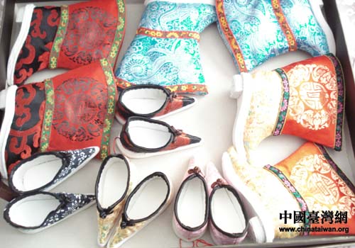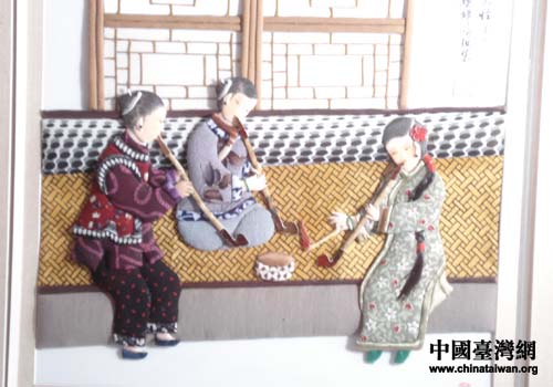 陶玉英老人布貼畫具有很強(qiáng)的東北特色,特別是陶老制作的三寸金鏈,更讓臺(tái)灣朋友看得愛(ài)不釋手。