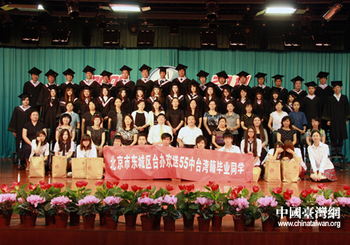 中國臺(tái)灣網(wǎng)6月27日北京消息 6月24日,北京市東城區(qū)臺(tái)辦來到北京第五十五中學(xué),參加學(xué)校為初高中共19名臺(tái)灣籍同學(xué)舉行的畢業(yè)儀式,并為同學(xué)們準(zhǔn)備了畢業(yè)禮物。