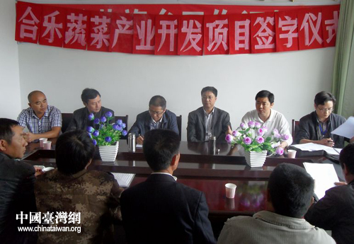 中國臺灣網5月31日瀘州消息 5月29日,瀘州市委臺辦為“掛包幫”和產業扶貧聯系村——敘永縣合樂鄉方元村招商的千畝反季節訂單蔬菜下單,某蔬菜商與合樂鄉簽訂了1200畝反季節高山綠色蔬菜產、供、銷一體合同。市委臺辦主任韓俊平參加了合同簽字儀式,并送上了一臺電腦,助力蔬菜網絡營銷,助推農村經濟發展。