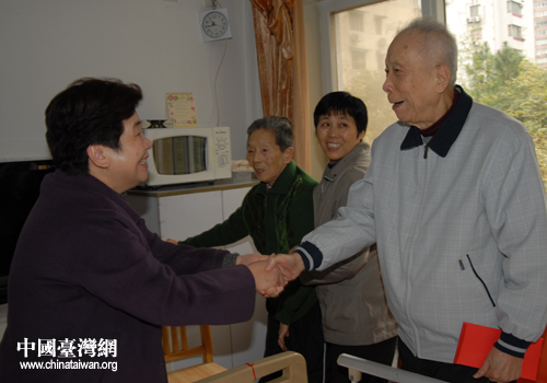 在靜安區老年醫院,林明月會長向護工了解郭炤烈名譽會長的身體狀況,郭會長的女兒從日本打來國際長途,感謝市臺聯長期以來的關心和慰問。在老臺胞林裕章家中,林明月會長回憶了上世紀八十年代由林老陪同返鄉尋根的往事并與林老一起聊起了近期兩岸關系的新進展。