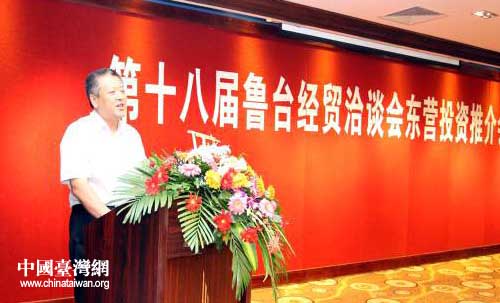 李俊峰副市長在第十八屆魯臺經貿洽談會推介東營。(圖片來源:東營市臺辦)