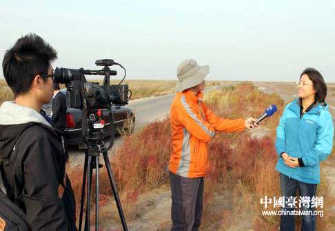 臺灣中天電視臺拍攝《黃河入海流》電視專題片。(圖片來源:東營市臺辦)