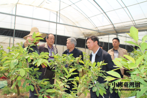 羅主任一行參觀生態(tài)園臺灣火龍果芭樂種植基地。(黔南州臺辦張榮周、王斌 攝)