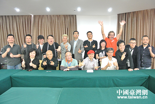 經(jīng)過激烈的創(chuàng)意廝殺,金犢決審結(jié)束后評審老師們搞笑大合影。(圖片來源:棗莊市臺辦)