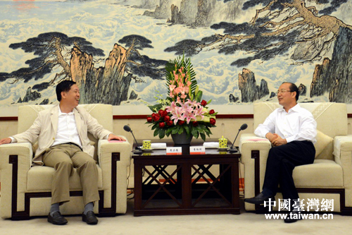 山東省副省長季緗綺在濟(jì)南會見臺灣鄉(xiāng)林集團(tuán)董事長賴正鎰。(圖片來源:山東省臺辦)