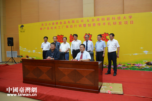 中國臺灣網6月20日武漢消息  6月18日下午,武漢小蜜蜂食品有限公司和臺灣明新科技大學在武漢市江夏區簽約“蜂產品觀光工廠體驗行銷暨創意伴手禮”項目。