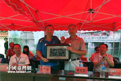黔南州臺辦向交流團贈送了禮品——水族馬尾繡。(圖片來源:黔南州臺辦)