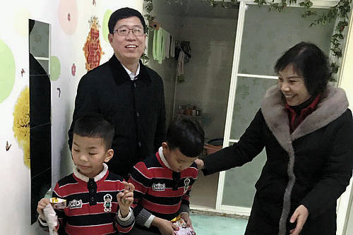 沈陽市于洪區區委常委、統戰部部長韓偉(左三)一行送去節日禮品和旺旺節日大禮包