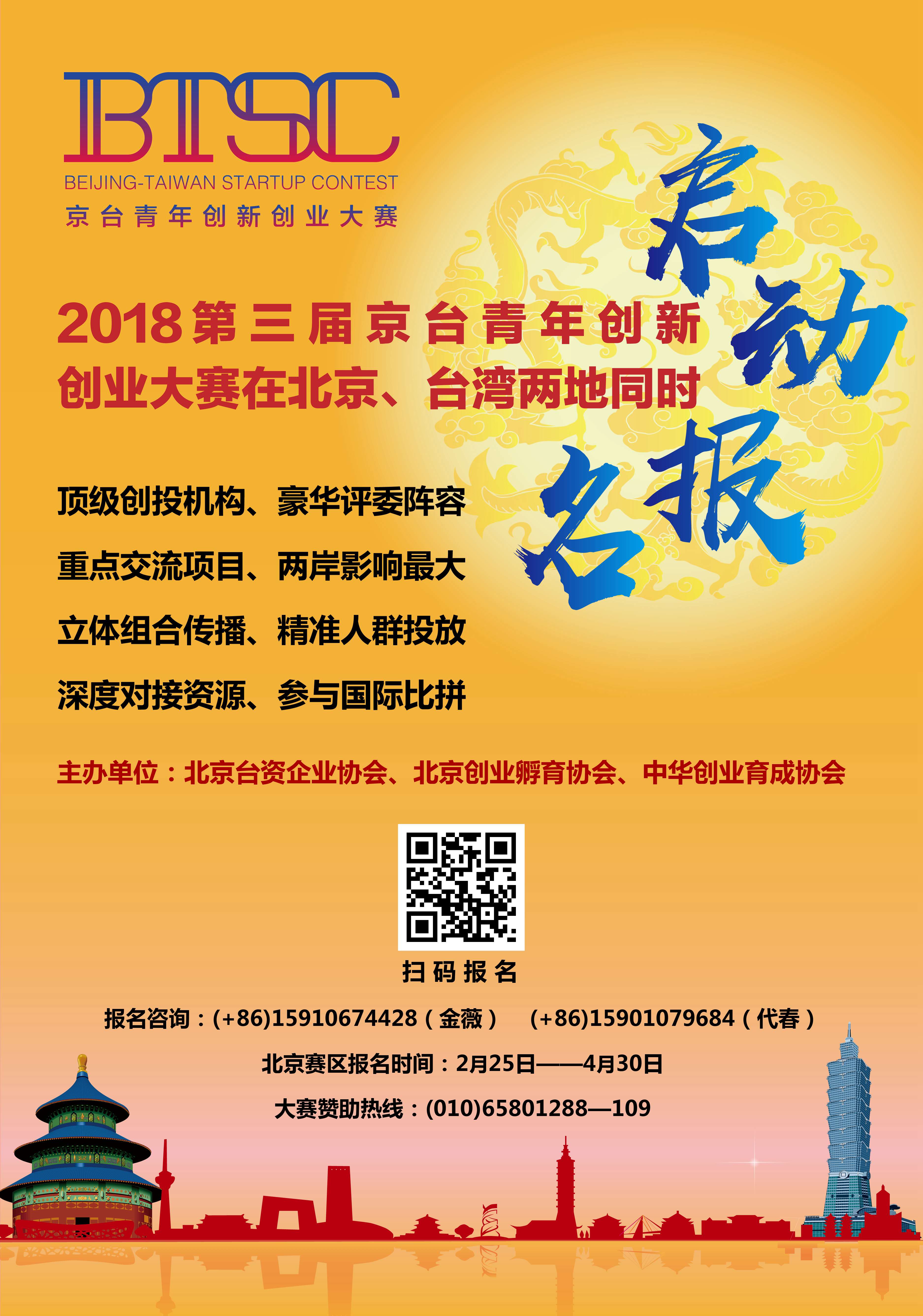 2月25日,由北京臺資企業協會發起并聯合北京創業孵育協會、臺灣中華創業育成協會共同主辦的2018第三屆京臺青年創新創業大賽在北京、臺灣兩地同時啟動報名。