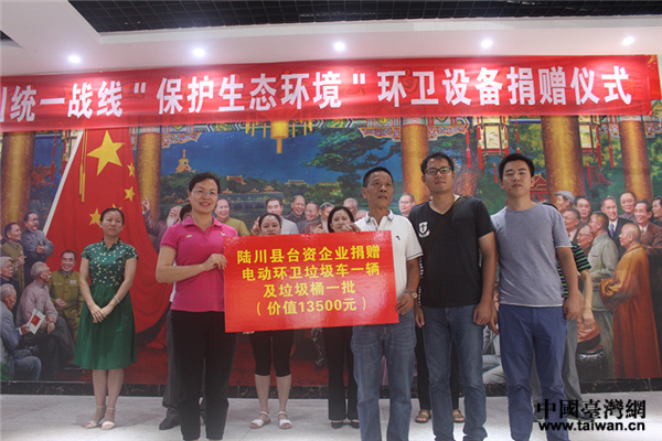 中國臺灣網(wǎng)6月20日陸川訊 6月15日,廣西玉林市陸川縣開展“保護生態(tài)環(huán)境,統(tǒng)一戰(zhàn)線在行動”系列專題活動,該縣7家臺資企業(yè)積極響應,參與當?shù)厣鷳B(tài)文明建設,并捐贈價值13500元的電動環(huán)衛(wèi)垃圾車一臺及垃圾桶一批。捐贈后,臺資企業(yè)代表還前往該縣溫泉鎮(zhèn)官田村開展清河大行動。
